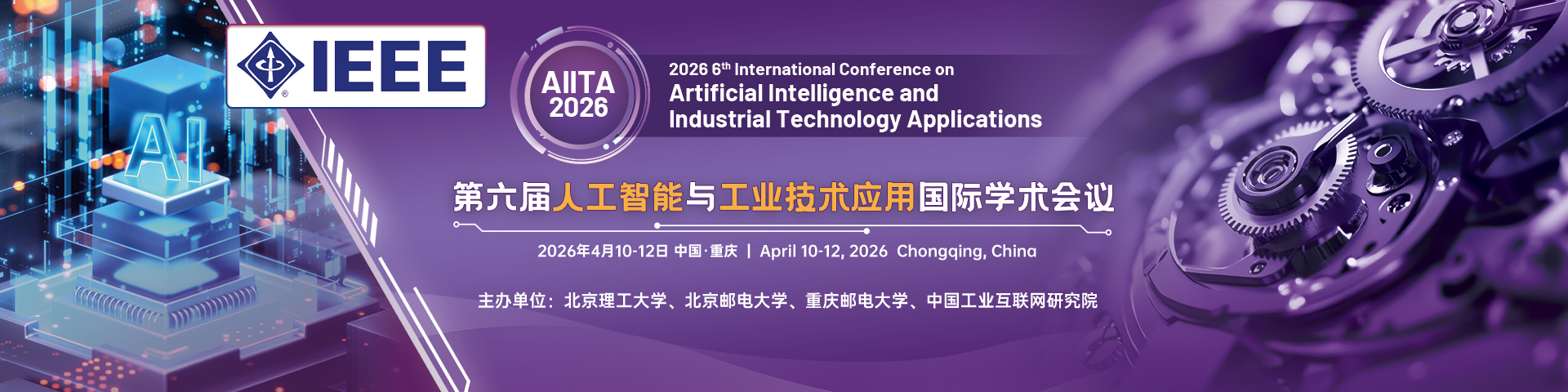 The 2026 6th International Conference on Artificial Intelligence and Industrial Technology Applications (AIITA 2026) is scheduled to take place in Chongqing, China, from April 10 to 12, 2026. This conference aims to serve as a platform for exploring and discussing innovative ideas and remarkable achievements in AI and computer applications, bridging the gap between theoretical research and practical applications. AIITA warmly welcomes authors to submit their articles highlighting ongoing research results, projects, surveys, and industrial experiences that showcase significant advancements in all related areas.